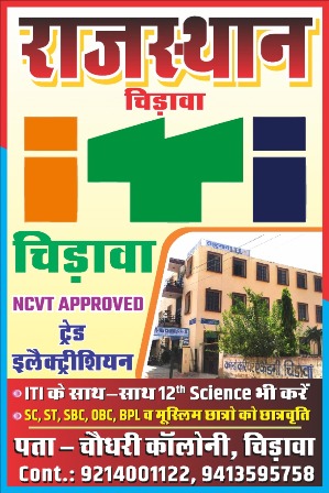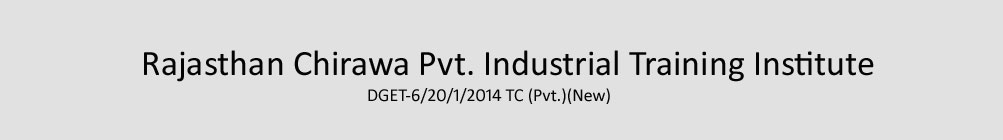 The Rajasthan chirawa Private Industrial Training institute, Dhani Mawandia Tehsil Chirawa is an effort to contribute to the industrial development by providing sound, moral and technical education to the youth of the State since Aug 2014. The Rajasthan (P) ITI offers courses in Electrician. It is affiliated to Technical Education, Jodhpur Rajasthan,and DGET New Delhi . Its NCVT affiliation No. is SCIR-30/11/2013 DG&ET 6/20/1/2014 TC(Pvt.)